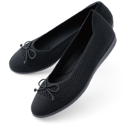 fuwaraku/FR-RX07 バレエタイプ メッシュタイプのニット素材で快適、ラウンドトゥにリボン付きがレディライク。