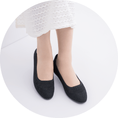 アーモンドトゥのニットパンプスでラクなのに美脚見え、